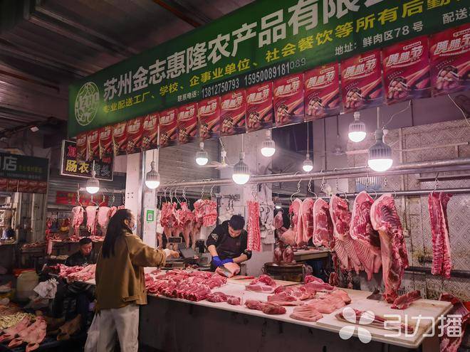 2月2日上午,走进南环桥市场肉类交易区,扑面而来的是浓浓的“烟火气”,此起彼伏的叫卖声、称重声、砍骨声相互交织。摊位上,一条条肥瘦相间的五花肉、一块块鲜红透亮的肋排整齐陈列。“买了10斤五花肉,准备回家做扣肉、红烧肉。”正在采购年货的市民李女士告诉记者,“这里不仅肉质新鲜,价格也实惠,是名副其实的‘批发价’。”像她这样的市民还有很多,大家都趁着年货节的实惠价格来“囤货”。商户杨老板一边切肉一边说:“最近这两天生意非常好,昨天一天卖出去50多头猪。”