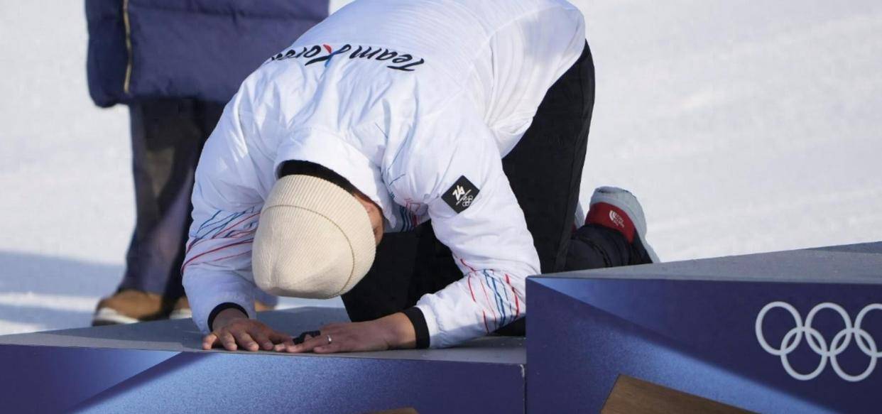 冲过终点后,这个37岁的男人没有立刻庆祝,他缓缓跪倒在冰冷的雪地上,俯身,深深地亲吻了那片承载了他12年梦想的雪面。 几分钟后,在正式的颁奖仪式上,他再次做出了一个让全场动容的举动——他面向观众席,朝着父母和妻子的方向,郑重地跪拜、叩首。